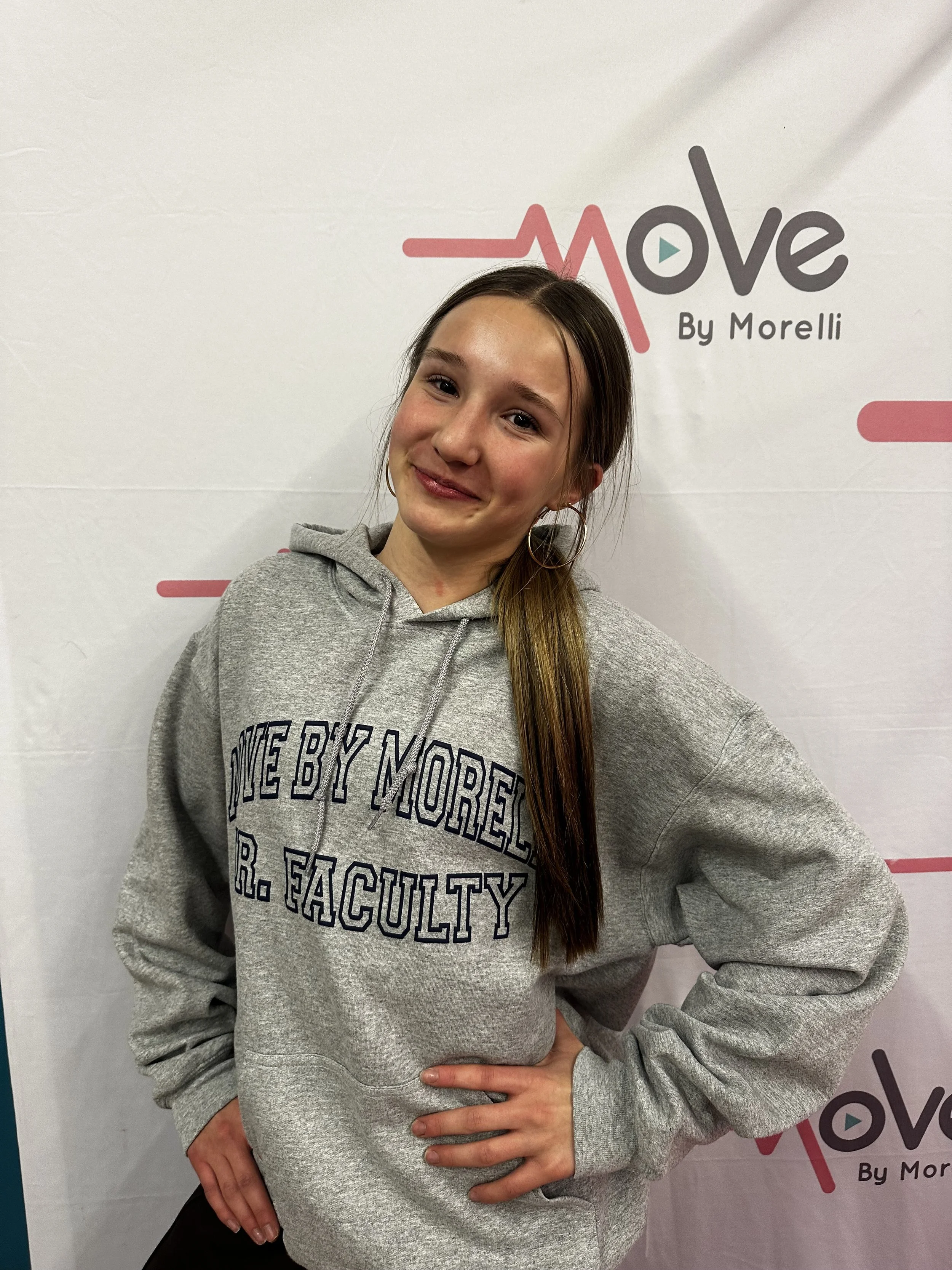 Genesse began dancing at the age of 3 and quickly fell in love with the art form. She has been a dedicated student at Move By Morelli for the past 12 years, where she has trained in various dance styles. As a member of Move the Club Competitive Team, Genesse has participated in numerous competitions and conventions, continuously expanding her experience. In addition to her competitive achievements, Genesse has been involved in unique opportunities such as Heat Force and Celebrity Senior Crew, which have further enriched her dance journey. Now, Genesse is excited to share her extensive knowledge and love for dance with the students at Move!